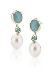 Oorstekers goud | parel, smaragd & amazoniet