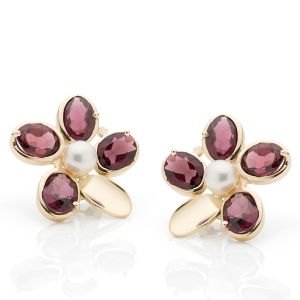 Oorclips 18 karaat | granaat & parel
