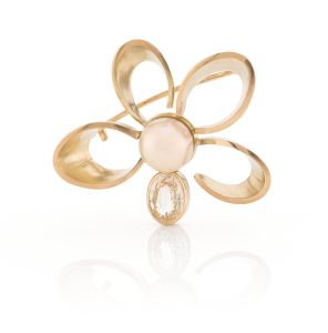 Broche goud | parel & gele korund
